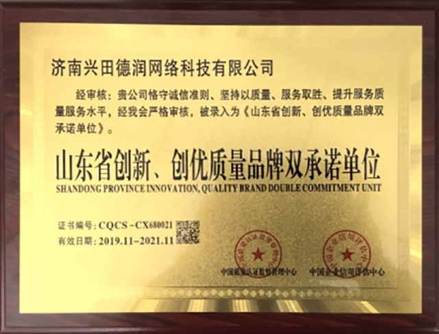 近日,興田科技經(jīng)中國質(zhì)量認(rèn)證監(jiān)督管理中心、中國企業(yè)信用評估中心對公司及官方網(wǎng)站的征信調(diào)查和綜合評價,被評選為山東省創(chuàng)新、創(chuàng)優(yōu)質(zhì)量品牌雙承諾單位。這標(biāo)志著興田科技在綜合實(shí)力、企業(yè)競爭力、服務(wù)質(zhì)量水平、安全運(yùn)營能力等方面再次獲得了權(quán)威機(jī)構(gòu)的高度認(rèn)可。